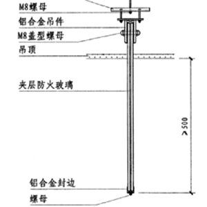 夹层防火玻璃打孔后采用对穿螺栓吊挂的方式与铝合金吊件进行安装固定。
