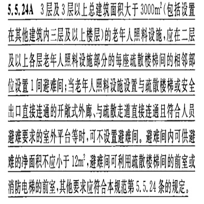 根据现行规范,如《建筑设计防火规范》(GB50016)中明确指出,高层病房楼、3 层及 3 层以上总建筑面积大于 3000㎡(包括设置在其他建筑内三层及以上楼层)的老年人照料设施等应设置避难间,且避难间应设置直接对外的可开启窗口或独立的机械防烟设施,外窗应采用乙级防火窗